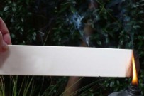 In contrast the next two photos show an alternative slat type which burns when the flame is applied but continues to burn and produce smoke after the flame is removed.